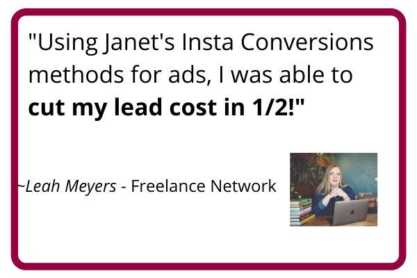I’ll talk to you in our private FaceBook Group that you’ll get instant access to as soon as you grab the Insta Conversions Course.